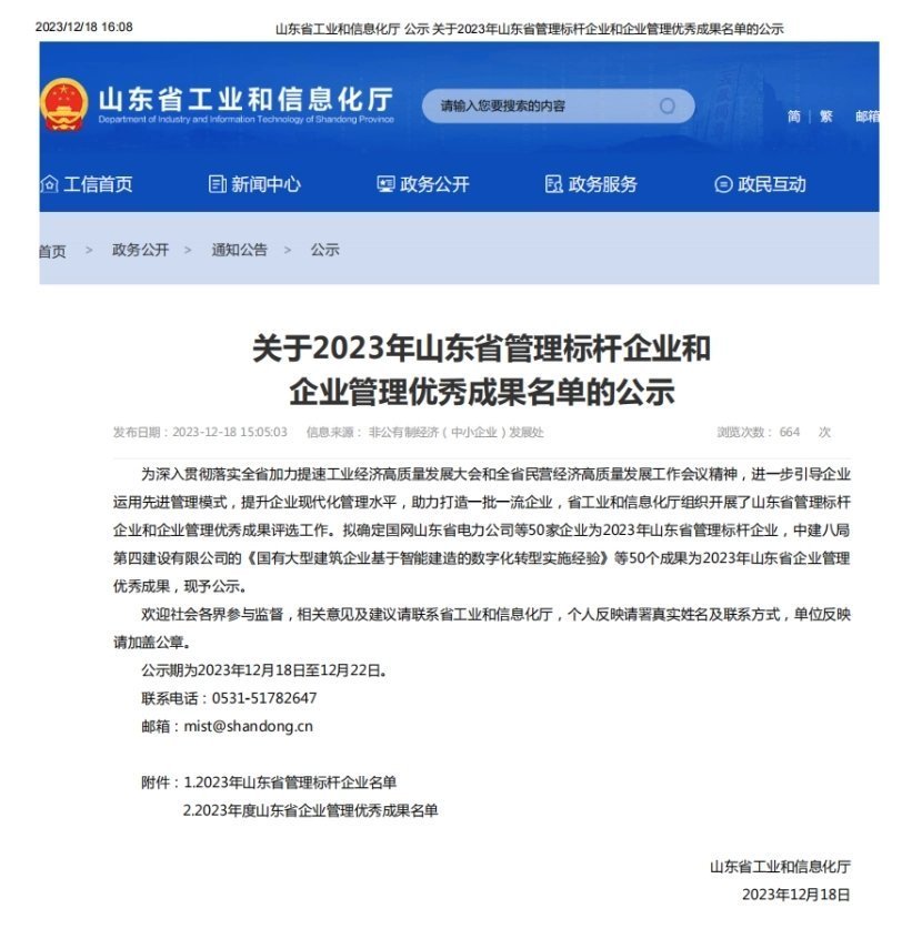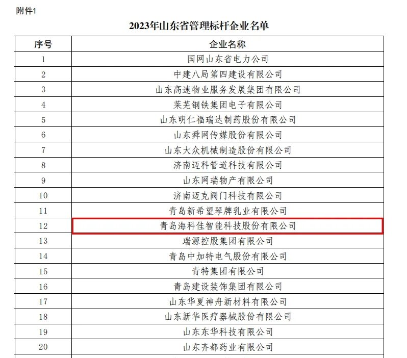 近日,山東省工業(yè)和信息化廳公示了山東省管理標桿企業(yè)和山東省企業(yè)管理優(yōu)秀成果名單,青島海科佳憑借多年來形成的科學規(guī)范、系統(tǒng)完善、高效運行的現代企業(yè)管理體系,成功獲評2023年山東省管理標桿企業(yè)。